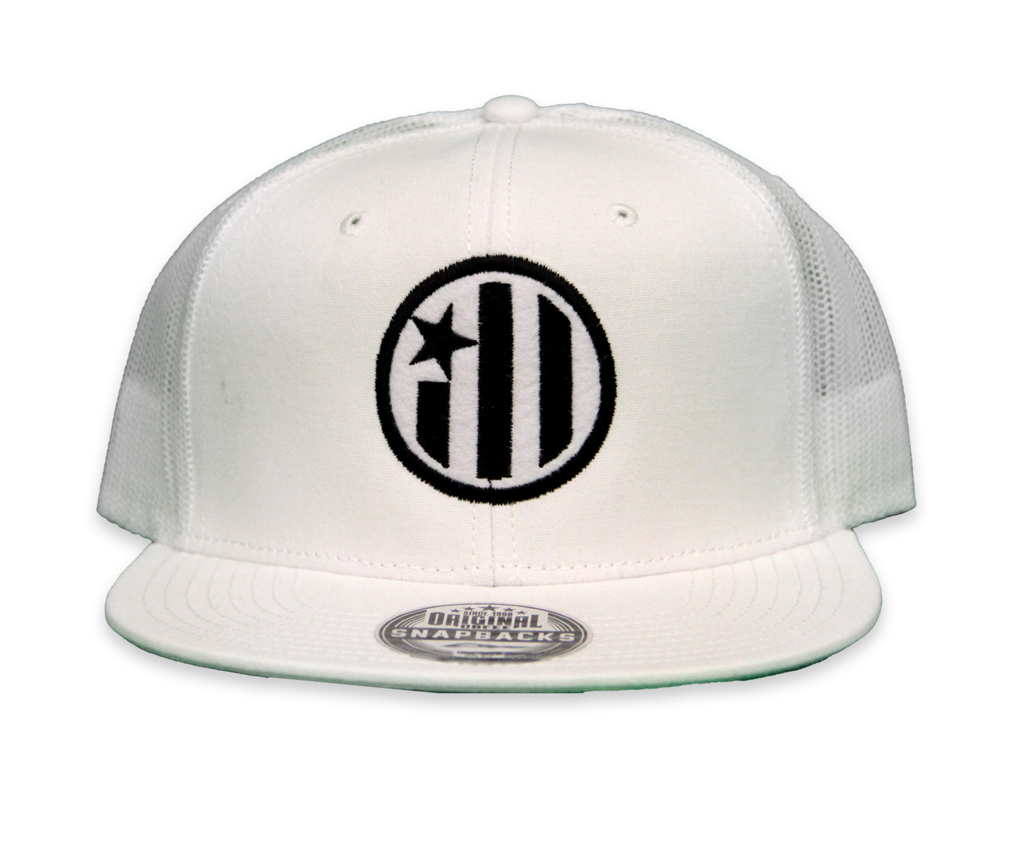 Klubová kšiltovka (snapback) v bílé barvě a výšivkou loga.