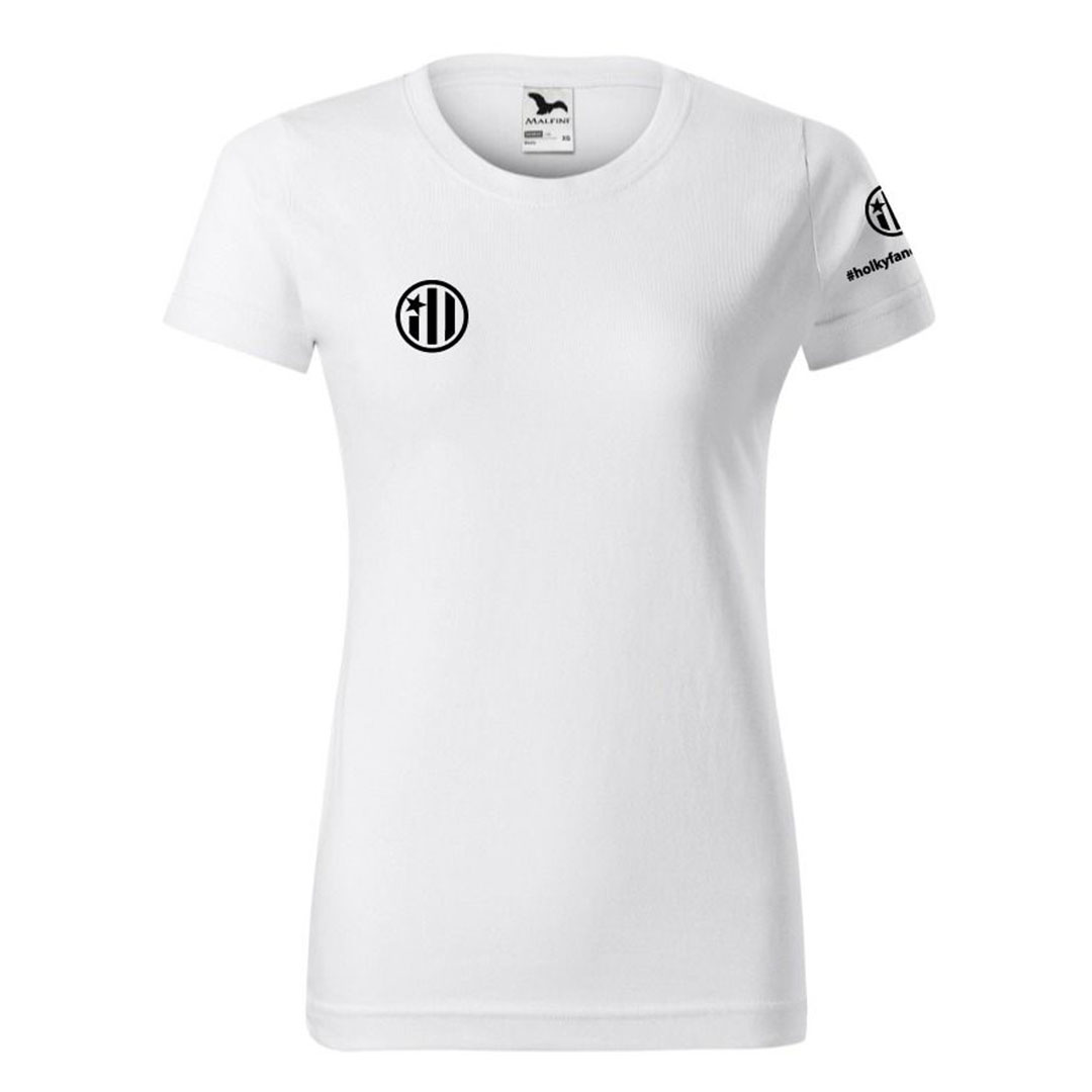 Limitovaná edice dámského klubového trika s #holkyfandidynamu na rukávu a na dolní části zad.